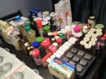 - The top two shelves, loosely organized according to purpose. Top shelf is smaller amounts of baking ingredients, next shelf down is cooking (oils, dry goods, etc.).
