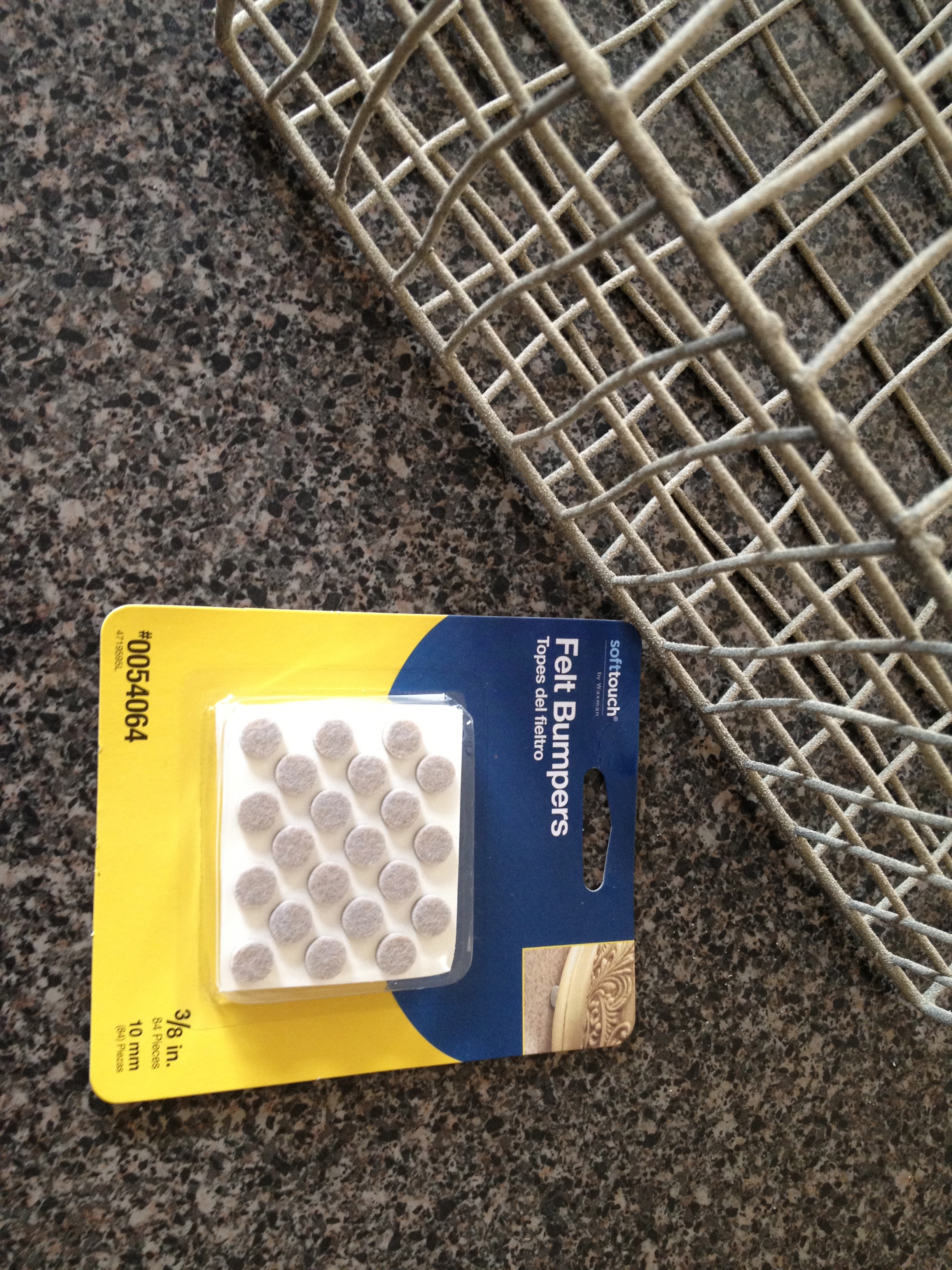 The 12×12 paper pictures is actually cork that has an adhesive back – perfect! I worked on the labels, and added felted feet to prevent scratching anything upon which the basket might rest. And I was finished. The only thing I would recommend adding would be some clear contact paper over the label, as it will be in a bathroom, getting all moist.