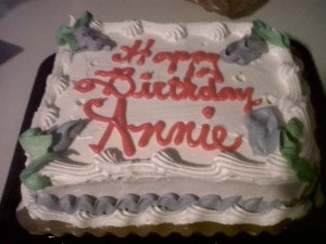 It is my birthday! Notice the exclamation point there? Yep. For someone fast approaching 40, you may not expect me to be at all excited about this anniversary of my birth, so very long ago. Except that I am. Here’s why: I had a fantastic birthday last year. No, I didn’t have a huge party. No, I didn’t get a ton of gifts. And no, I didn’t travel anywhere special. What made it fantastic? Someone bought a banner to hang across the dining room. Someone bought me a cake with my name on it. Someone put candles in that cake and actually lit them. And then they sang to me. And I got to open presents and have a family moment. A bunch of them. And it was fantastic.