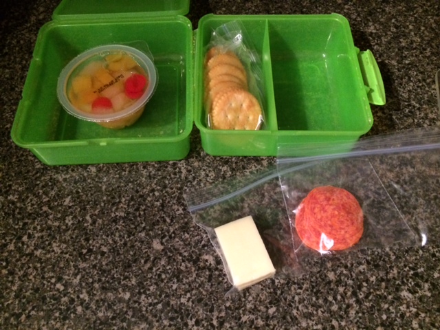 Last Sunday, I decided that he should help me prep his lunched for the week. Pretty simple tasks involved, like counting 12 crackers and 12 pepperonis to put into snack bags. The cheese is a bit more complicated, involving a knife and cutting, but I figured he could help me with the bulk of it. I gave him five minutes, and he came to help, doing what I asked. My goal is to get him to the point where he can do this himself every Sunday, because why not?